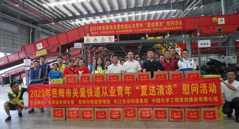 7月18日下午,公司聯合岳陽團市委、市郵政管理局、長江生態環保集團在科德物流園開展2023年關愛快遞從業青年“夏送清涼”慰問活動。共青團岳陽市委書記綦小廣、岳陽市郵政管理局局長殷宏亮出席慰問活動。長江生態環保集團湖南區域公司黨群工作部、公司團委、岳陽污水治理項目部相關負責人員參加慰問活動。