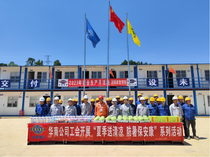 近日來,全國多地持續高溫,為保障職工生命健康和安全生產,華南公司工會積極開展“夏季送清涼 防暑保安康”系列活動。活動中,由華南公司班子成員帶隊,前往惠州立拓、中偉磷酸鐵、貴州息烽PPA等項目,為高溫酷熱中堅守崗位的一線員工送去組織的關懷和夏日的清涼。
