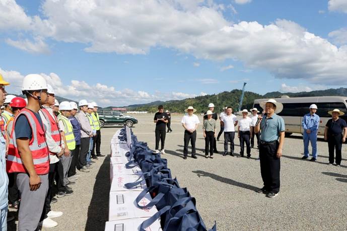 “大家戰高溫、斗酷暑,加快推進項目建設,積極助力岳陽發展,辛苦了!”李摯一行深入現場察看項目建設情況,與職工親切交談,對項目團隊在高溫酷暑下堅守崗位、辛勤付出表示贊賞,高度肯定了化建湘軍“敢打硬仗、能打勝仗”的優良傳統。他指出,作為湖南省單體投資規模最大的產業項目,乙烯項目對于推動地方經濟發展、優化產業結構具有重要意義,項目建設進展備受全省上下關注。項目部要加快項目建設進度,科學安排施工時間,在確保工人健康安全的前提下搶抓時間節點,確保國慶節前完成場地平整。相關部門要做好后勤保障工作,努力為廣大職工創造安全、健康、清涼的工作環境,切實增強一線工作人員的獲得感、幸福感、安全感。