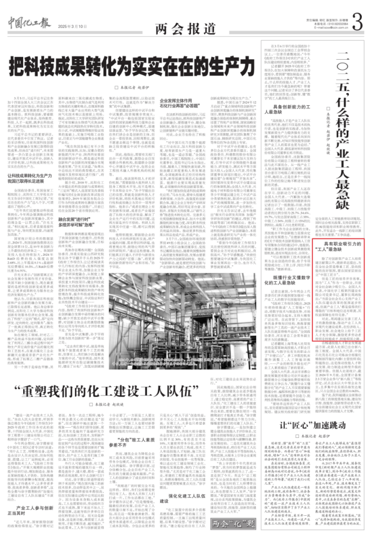 3月10日,中國化工報以《二O二五,什么樣的產業(yè)工人最急缺》為題報道周鴻的建議。