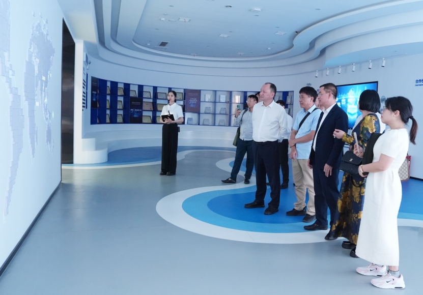 會前,越南代表團一行在周鴻的陪同下參觀了公司企業文化展廳,全面了解公司在海外市場的深耕歷程,對公司在多個標志性工程中展現出的技術實力與項目管理能力表示贊賞。