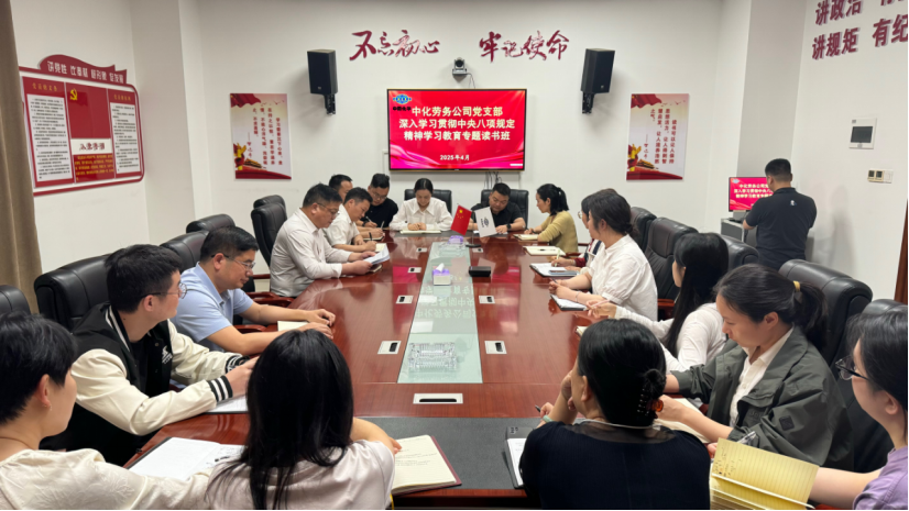 4月21日,中化勞務(wù)公司黨支部舉辦深入貫徹中央八項規(guī)定精神學習教育專題讀書班。活動中,全體黨員原原本本研讀《習近平關(guān)于加強黨的作風建設(shè)論述摘編》,認真學習領(lǐng)會中央八項規(guī)定及其實施細則精神。活動要求,全體黨員干部務(wù)必提高政治站位,深刻領(lǐng)悟開展學習教育的重大意義,將思想和行動統(tǒng)一到集團公司和公司黨委決策部署上來,切實將學習成果轉(zhuǎn)化為實際行動,以實實在在的工作成績?yōu)楣靖哔|(zhì)量發(fā)展貢獻積極力量。
