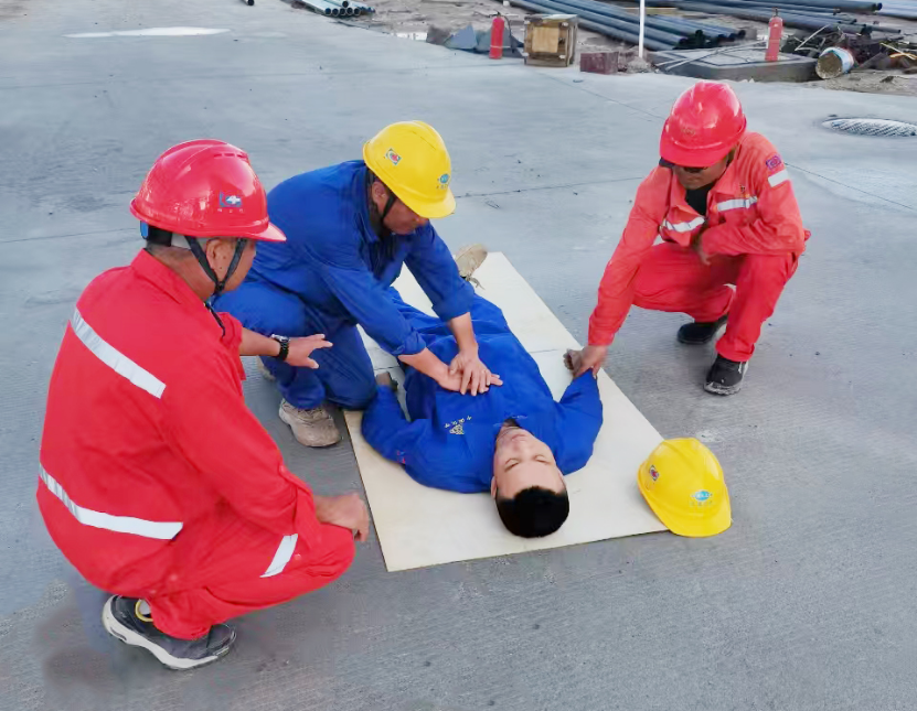 此次活動緊扣“人人講安全、個個會應(yīng)急”主題,應(yīng)急演練模擬施工現(xiàn)場高處作業(yè)人員因安全帶使用不當(dāng)發(fā)生墜落事故,設(shè)置險情發(fā)現(xiàn)、先期處置、預(yù)案啟動、現(xiàn)場救援、醫(yī)療救護(hù)、消息上報和事故調(diào)查7個環(huán)節(jié)。事故發(fā)生后,現(xiàn)場安全員立即上報,項目部迅速啟動應(yīng)急預(yù)案,應(yīng)急指揮組、搶險救援組、醫(yī)療救護(hù)組、事故調(diào)查組協(xié)同聯(lián)動,搶險救援組快速設(shè)置警戒區(qū)域,醫(yī)療救護(hù)組對模擬傷員開展骨折固定和心肺復(fù)蘇演練。整個過程組織有序、響應(yīng)及時,有效檢驗了項目應(yīng)急預(yù)案的實用性和可操作性。