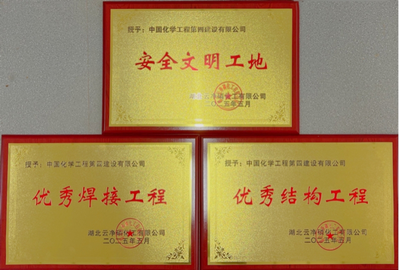 近日,由中南公司承建的湖北云凈磷化工有限公司40萬噸/年濕法凈化磷酸項目一期工程收到業(yè)主頒發(fā)的“安全文明工地”“優(yōu)秀焊接工程”“優(yōu)秀結(jié)構(gòu)工程”三塊獎牌及感謝信,業(yè)主高度贊揚項目團(tuán)隊展現(xiàn)出的卓越專業(yè)素養(yǎng)、頑強(qiáng)攻堅精神與強(qiáng)烈責(zé)任擔(dān)當(dāng)。