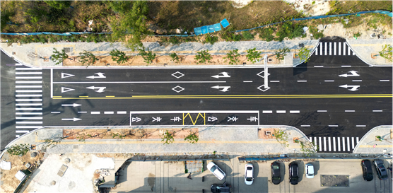 在道路修建過程中,項(xiàng)目團(tuán)隊(duì)充分發(fā)揮專業(yè)優(yōu)勢,嚴(yán)格遵循施工技術(shù)規(guī)范,精心選用優(yōu)質(zhì)的瀝青材料。為了提高攤鋪效率和碾壓密實(shí)度,項(xiàng)目團(tuán)隊(duì)采用了兩臺(tái)攤鋪機(jī)聯(lián)鋪等科學(xué)有效的施工措施,嚴(yán)格控制瀝青混合料在施工過程中的溫度損失,有效提高瀝青混合料的熱穩(wěn)定性和耐磨性。此外,項(xiàng)目團(tuán)隊(duì)還加強(qiáng)了現(xiàn)場觀測,使瀝青面層的平整度和穩(wěn)定性達(dá)到最佳狀態(tài),確保了項(xiàng)目的順利竣工。